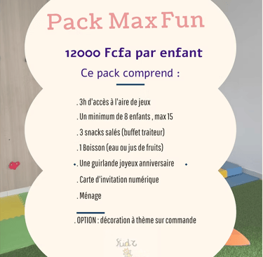 Nos packs anniversaires . N'hésitez pas à nous contacter pour plus d'informations !