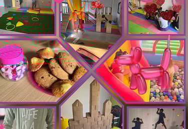We offer a safe playing area for kids from 1yo to 9 yo with different activities : cerative workshops, cohesion games, motor skills games, coordinnation games... for unforgettable playdates !